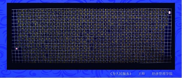日前,教育部公布全国高校廉政文化作品大赛评选结果,我院学生王帅书法作品“为人民服务”在大赛中获得书画摄影类作品二等奖。