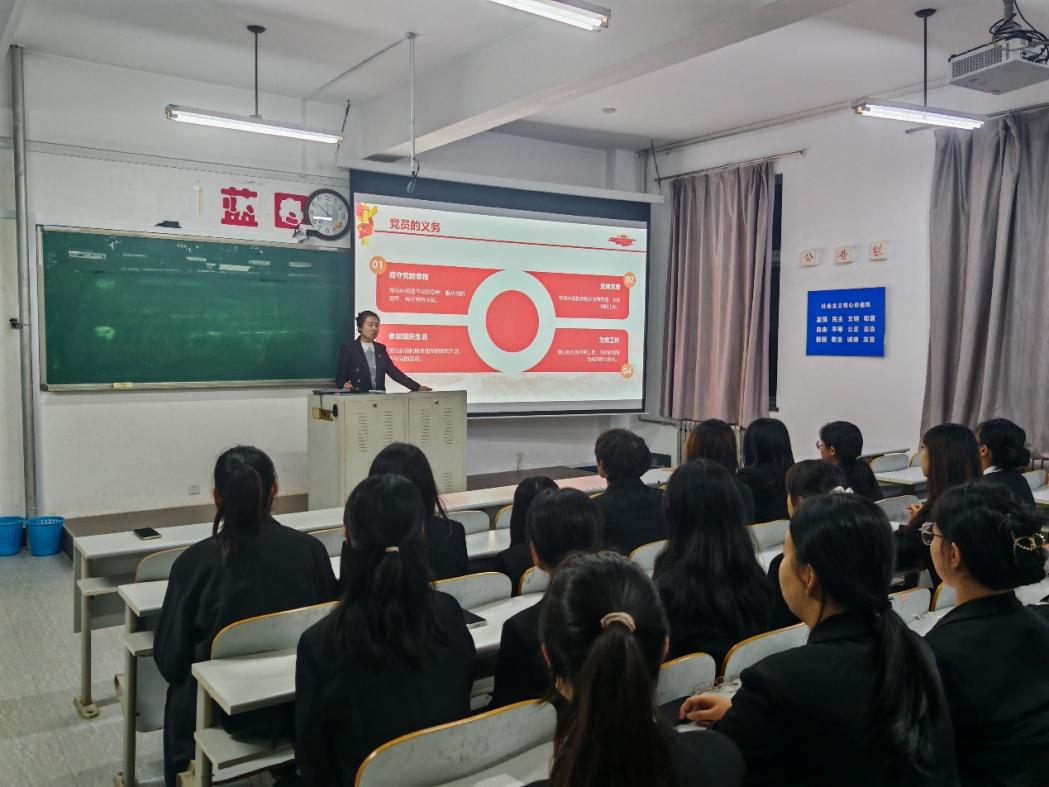 10月19日19:00,经济管理学院第二十二期入党积极分子党课培训在大黑石校区二教402举行,本科生党支部书记佟宁宁主讲,第二十二期全体入党积极分子参加。