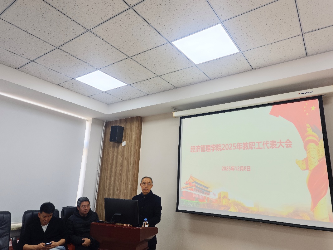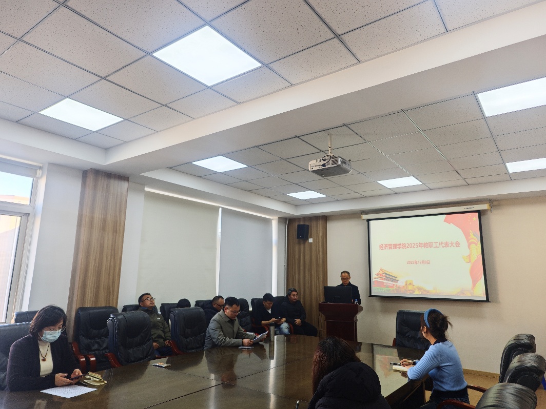 12月8日,经济管理学院在北院办公楼S521召开2025年教职工代表大会。学院副院长于涛主持会议,全体教职工参会。
