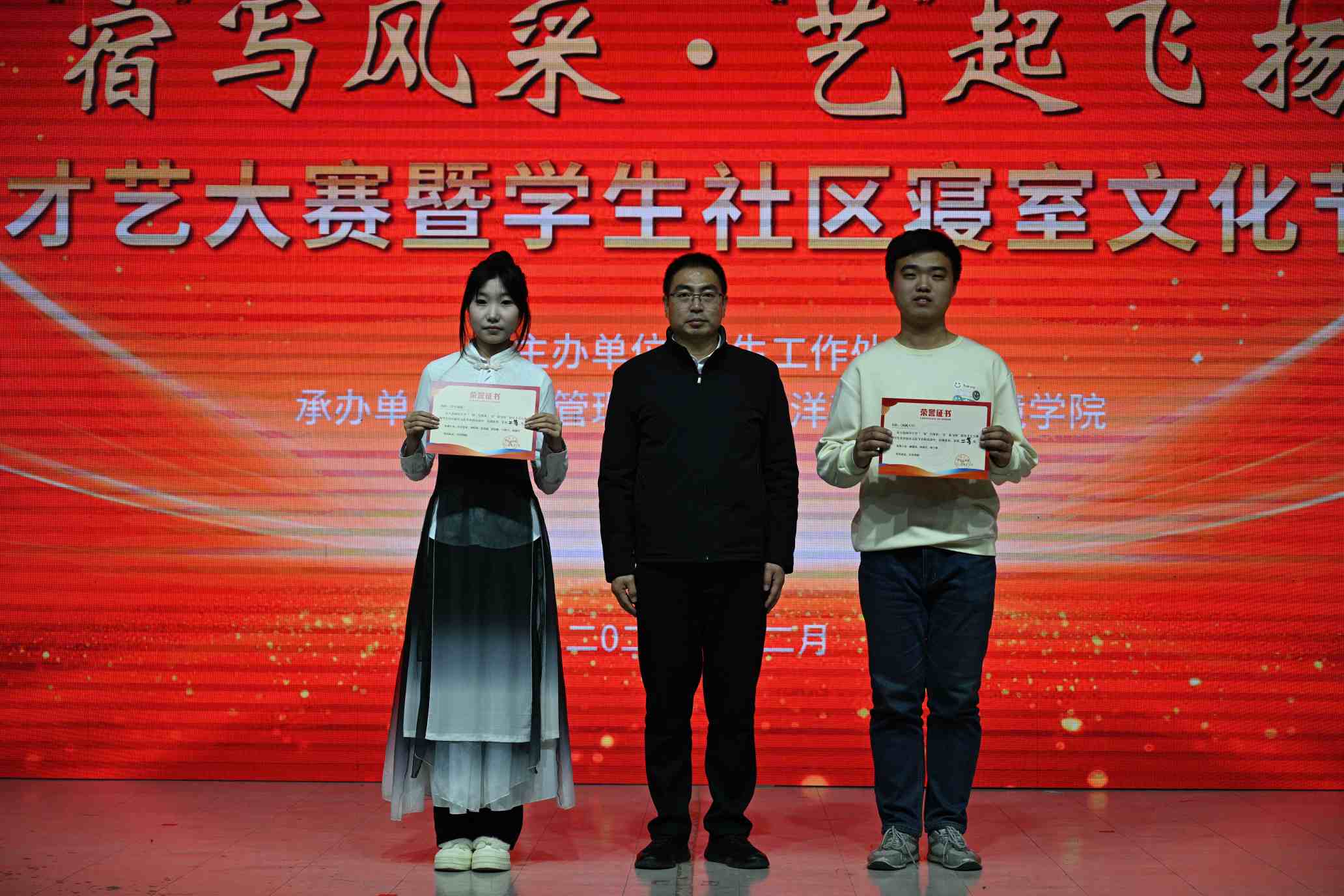 为深化学校“一站式”学生社区建设,推动多元育人理念与社区文化深度融合,筑牢寝室育人阵地、提升思政教育实效,12月5日晚,由学生工作处主办、经济管理学院和海洋科技与环境学院承办的“‘宿’写风采·‘艺’起飞扬”寝室才艺大赛在大黑石校区艺体中心圆满落幕。学校党委副书记李智军出席活动,学生工作处、校团委、大黑石校区管委会办公室负责人及有关人员,各学院分管学生工作领导、团委书记、全体辅导员及600余名学生代表参加活动。