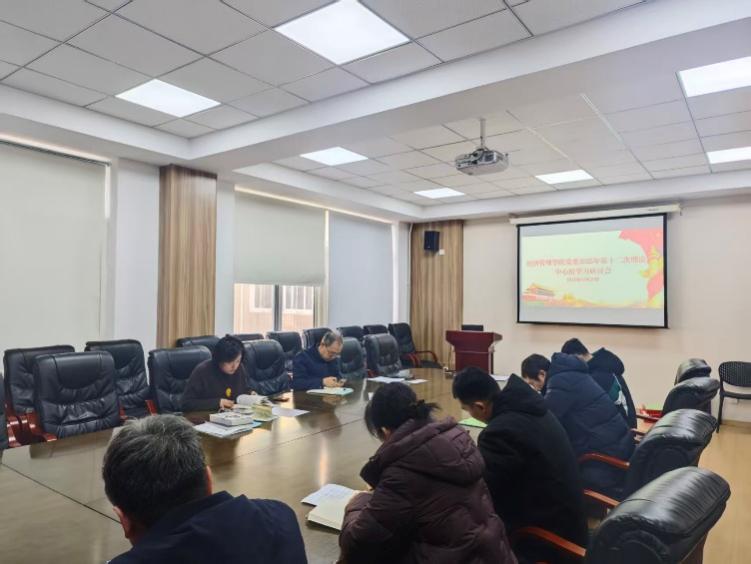 会议分专题学习党的二十届四中全会精神、《习近平谈治国理政》第五卷及习近平总书记重要讲话精神,同步传达学习省委全会精神。与会人员集中研读相关学习材料,重点领会“十五五”规划战略部署、新质生产力培育发展要求及2026年经济工作 “稳中求进、提质增效”核心部署,深入把握辽宁“十五五”时期高质量发展目标与全面振兴新突破实践要求,结合学院学科特色与优势,围绕学科建设、人才培养与服务地方实体经济发展的结合点开展深入研讨。