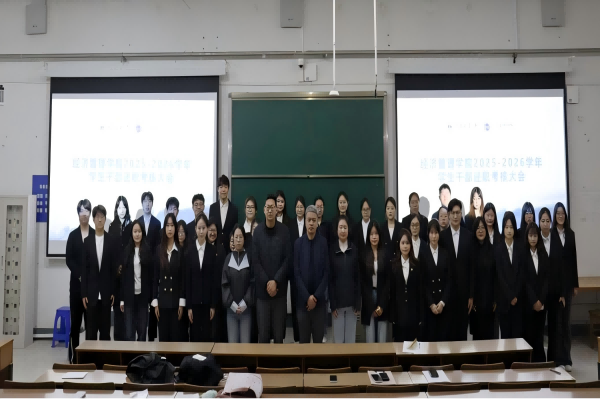 为全面复盘阶段性工作、明晰发展方向,深化学生会改革、提升学生工作质效,4月13日,经济管理学院第23届团委学生会中期述职考核大会在大黑石校区第一阶梯教室顺利召开。学院党委副书记李志楠,团委书记佟宁宁,辅导员刘子琦、石秀琪、唐佳楠及学生会主席团、各部门负责人参会。